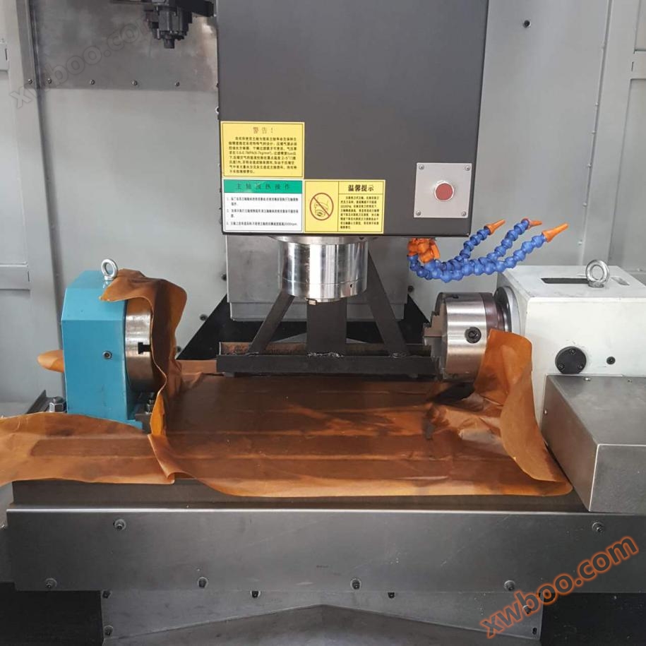 VMC850 の4軸加工センターの現在の市場需要はますます大きくなっており、当社は毎月5台前後の出荷量を持っており、当社850の4軸加工センターの構造形式は多くが固定立柱式であり、Z方向ストロークは一般的に標準ストロークより100 mm長くなり、テーブルは長方形であり、ガイドレールが選択した輸入ブランドのリニアローラであり、その利点は負荷が大きく、剛性が高く、精度が高く、機械全体の構造と外形寸法はコンパクトで合理的であり、主軸はサーボプラスパワーモータを選択し、タイミングベルト駆動により、顧客の高速で高精細な加工要求を満たすことができ、同時に強力切削と重切削にも適している。各種ディスク類、プレート類、ハウジング、カム、金型などの複雑な部品を一度にクランプすることができ、同時にドリル、フライス、ボーリング、拡、ヒンジ、剛性タッピングなどの多種の工程加工を完成でき、多品種、中小ロット製品の生産に適し、加工効率を大幅に高めた。850四軸加工センターは作業台に水平軸を取り付けたNC回転台(つまり第4回転軸)であり、螺旋線を加工するために使用され、第4軸装置は顧客の特殊部品に対する加工要求を満たしている。